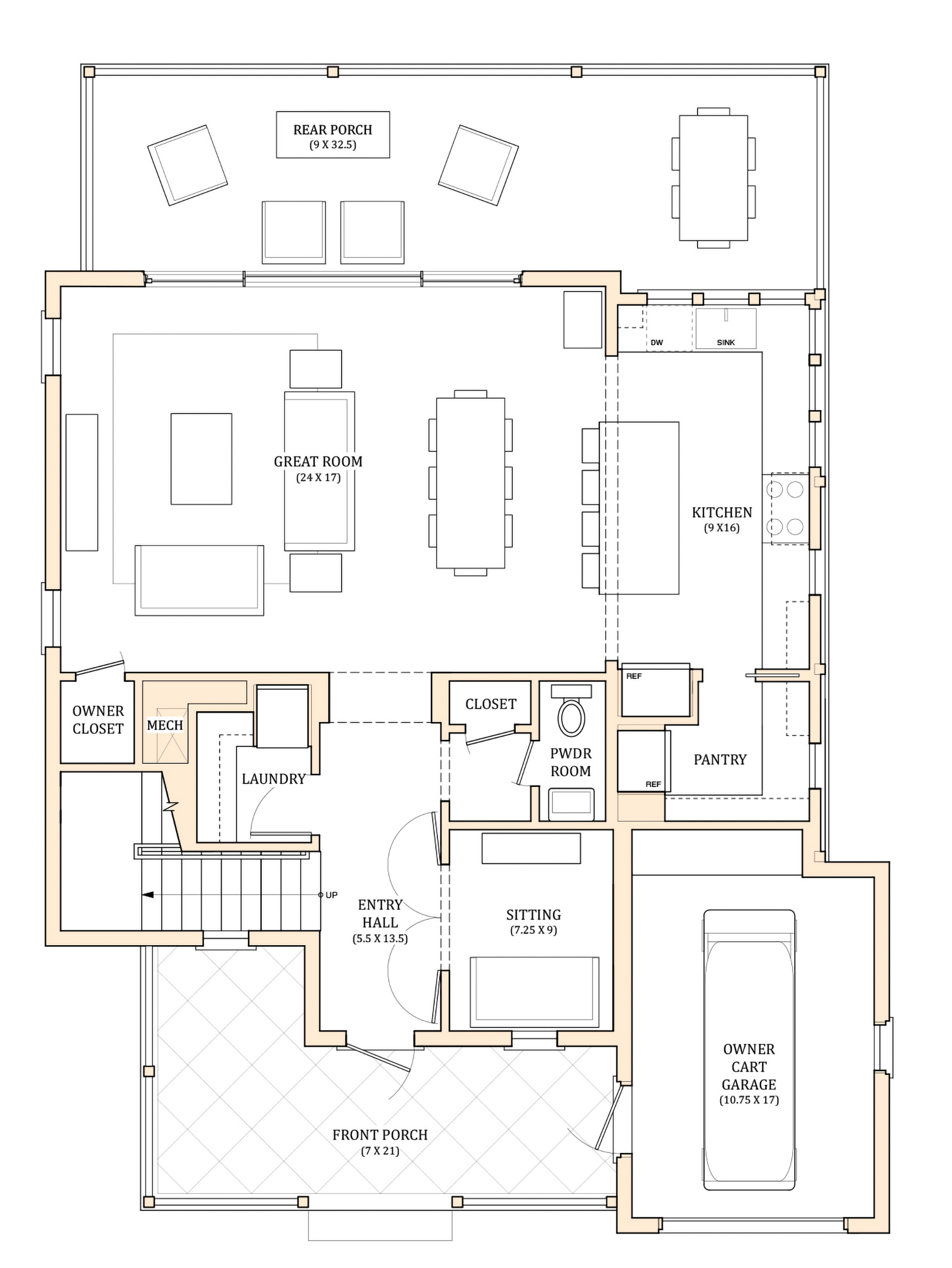 The Cottage-B plan is 3 bedrooms, 3.5 baths and has a partially attached garage for golf cart and owner storage. Each home will be fully furnished and outfitted with a full complement of linens and house wares. Marina View Cottage – B units are being offered at $2,700,000